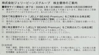 株主優待取得・到着 ジェリービーンズから株主優待案内が到着♪
