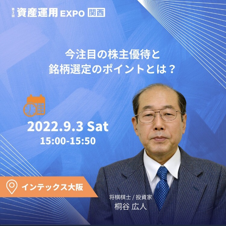 将棋棋士/投資家の桐谷広人さんのセミナーを、2022年9月3日(土)にインテックス大阪で開催された資産運用EXPOに参加して聞いてきました!