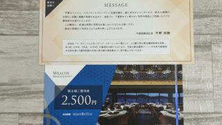 株主優待取得・到着 ウェルス・マネジメントから株主優待が到着♪ 人生で初めてアレしてみた… 家族が使える優待なら持っていてもいいと思う「かぶ太郎」ですウェルス・マネジメント(3772)から2025年6月権利の株主優待が到着しました。不動産ファンドによる高級ホテルへの投資や運営を展開している企業。事業用不動産の開発・再生に強みを持っ... 2025.09.26 株主優待取得・到着