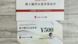 100株だと優待券1,000円、ギフトカード500円。