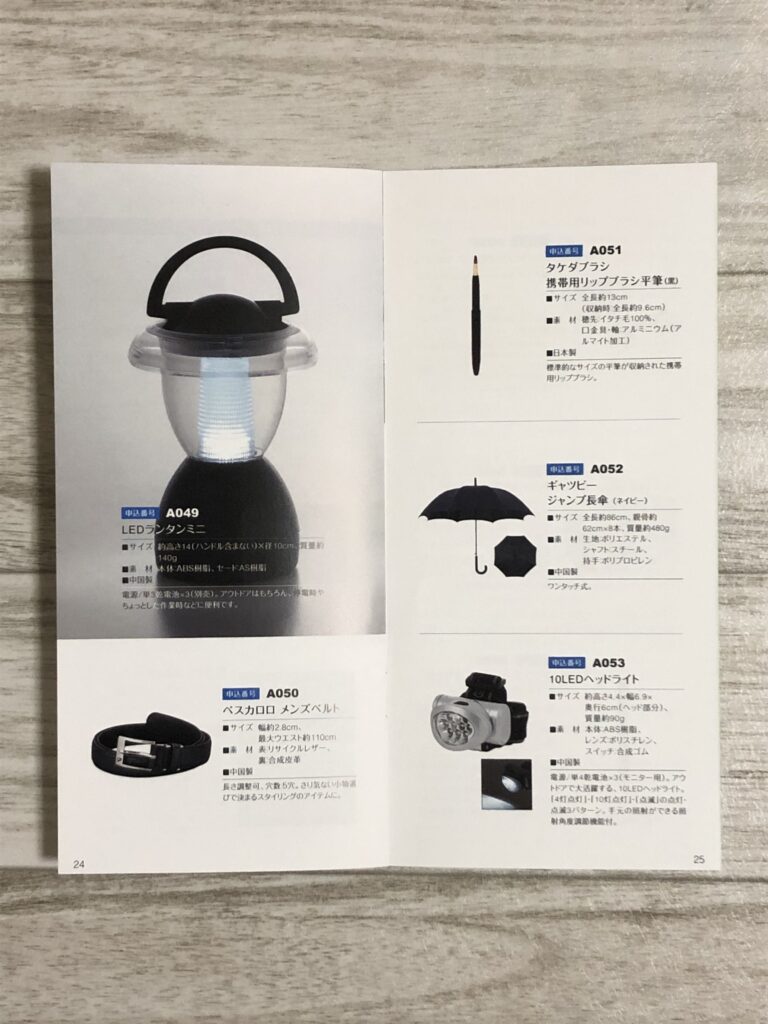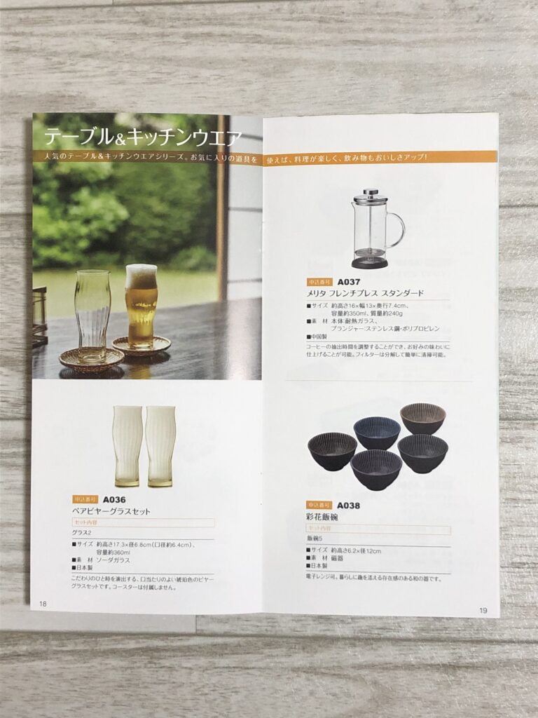 2,000円相当の「ギフトカタログ」は全5部門25ページ分で構成されていて、商品も豊富に取りそろえられていますよ。